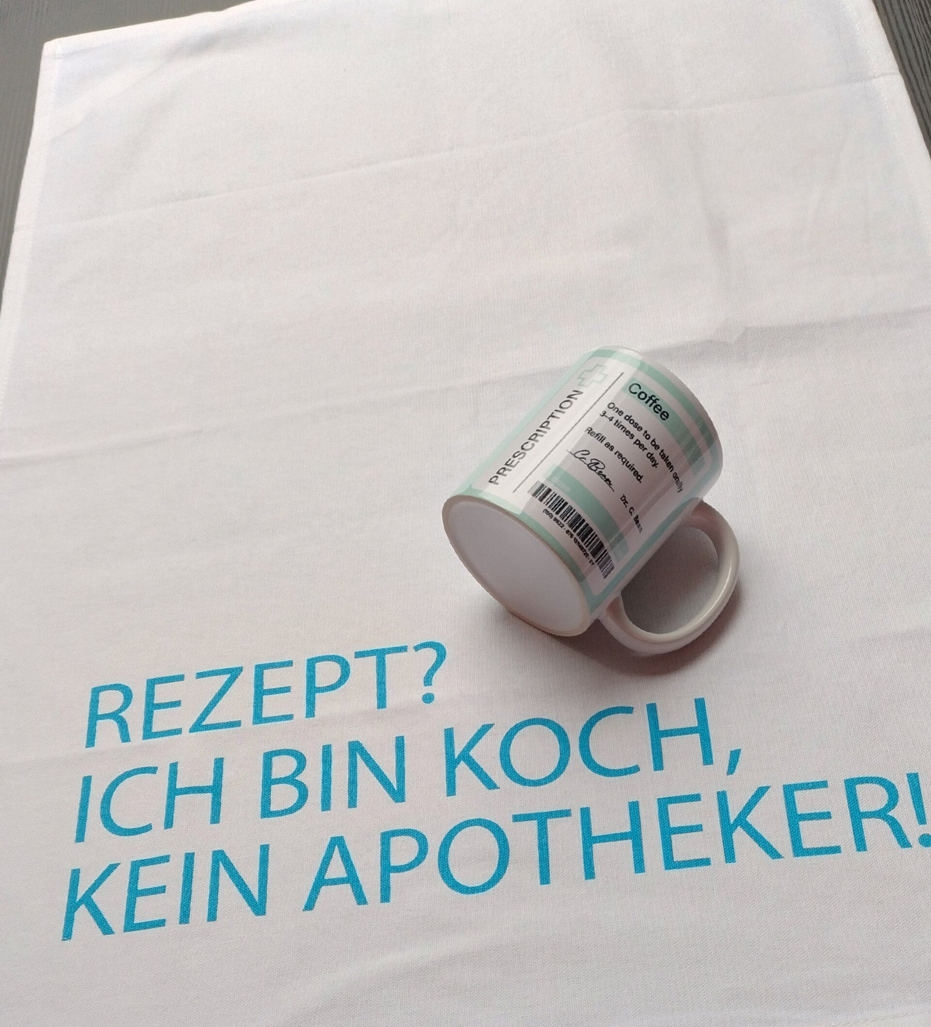 Design-Witz: Eine Tasse, die aussieht wie eine ärztliche Verordnung, die so manchem echten Rezept ähnlich sieht!