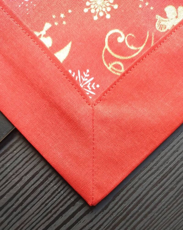 Verwandeln Sie Ihren Tisch im Handumdrehen: die Vorderseite im tiefen Rot, akzentuiert mit goldenen Mustern, zaubert sofort die perfekte, festliche Stimmung in Dein Zuhause.
