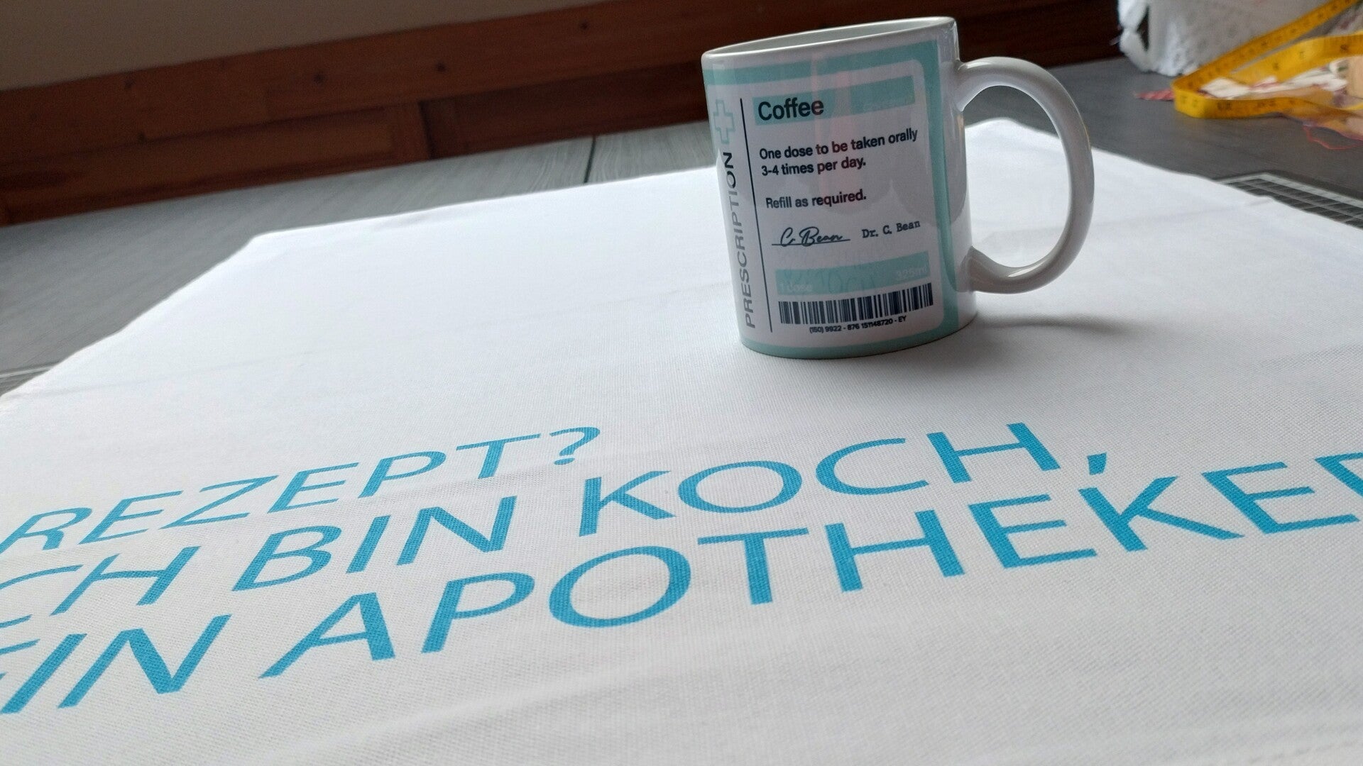 1x Kaffeetasse (Mug) im "Prescription/Rezept"-Design: