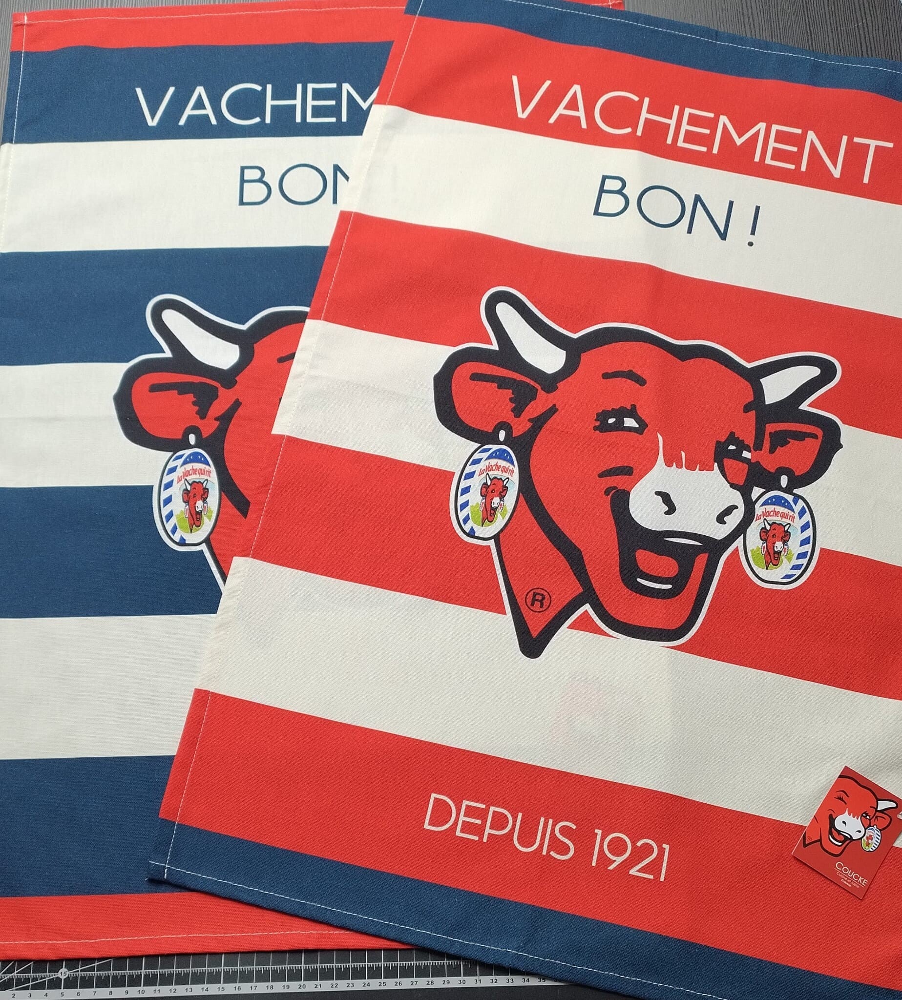 "La Vache qui rit" Geschirrtuch Geschenk-2er Set - Geschenkband